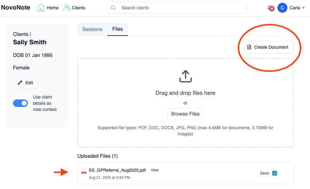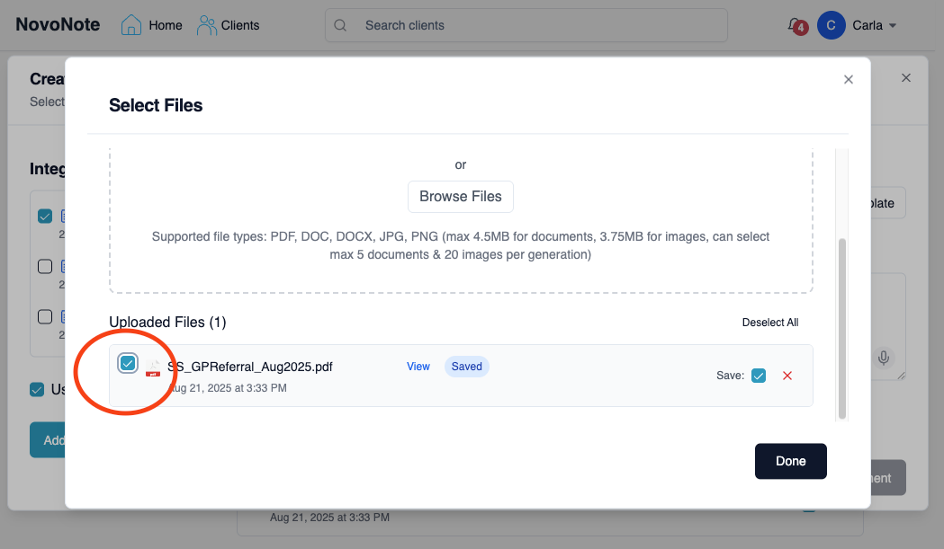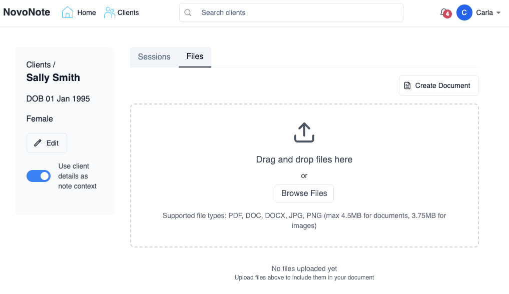You can now upload external files in NovoNote and have them integrated directly into your documentation and session notes.
