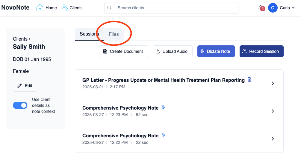 1. Open a client file → select “Files” tab