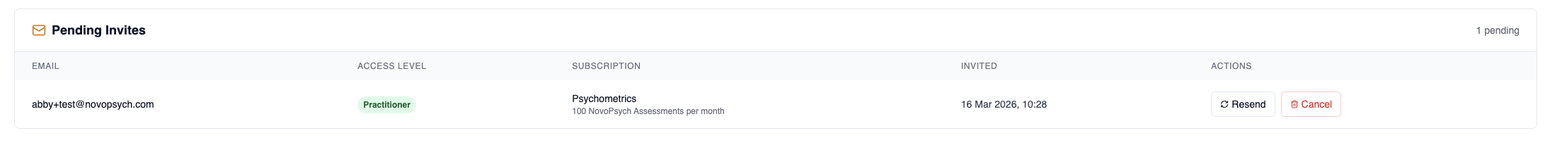 - View, resend or cancel pending invites sent to new users